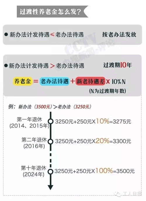 對于2014年10月1日前(簡稱改革前,下同)參加工作、改革后退休的“中人”設(shè)立10年過渡期,過渡期內(nèi)實行新老待遇計發(fā)辦法對比,保底限高。過渡期結(jié)束后退休的人員執(zhí)行新辦法。