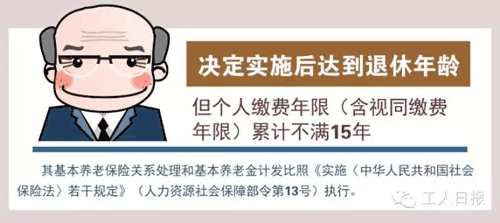 決定實施后達到退休年齡但個人繳費年限累計不滿15年的人員,其基本養(yǎng)老保險關(guān)系處理和基本養(yǎng)老金計發(fā)比照《實施〈中華人民共和國社會保險法〉若干規(guī)定》(人力資源社會保障部令第13號)執(zhí)行。